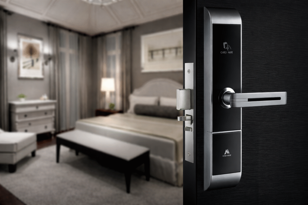 A Hotel Door Lock System is a modern electronic locking solution designed to provide secure, keyless, and convenient room access. It replaces traditional keys with RFID cards, PIN codes, mobile access, or biometric verification, ensuring enhanced guest experience and hotel security.